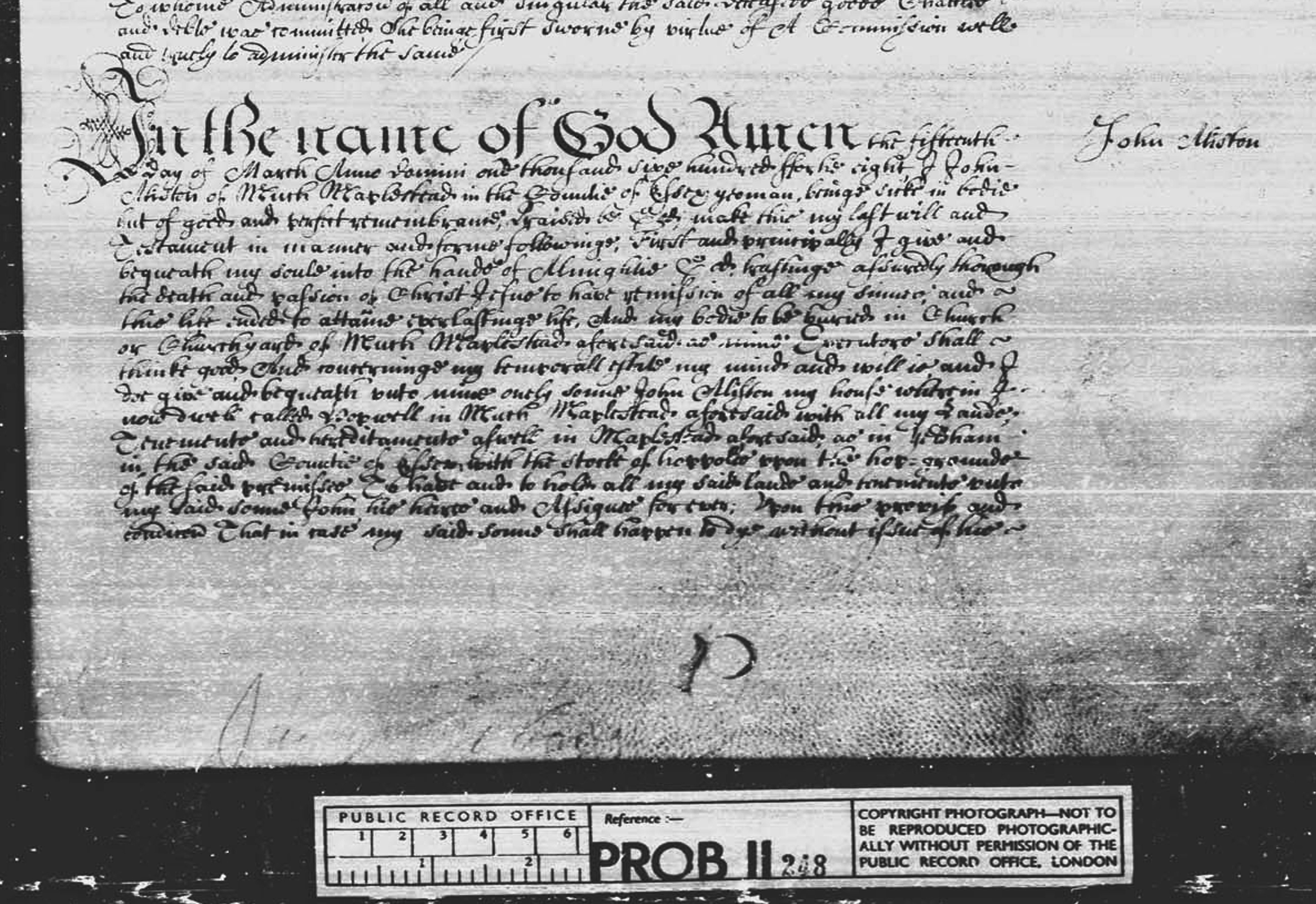 John ALSTON (ALISTON) of Gt Mapelstead ESS [20738]
