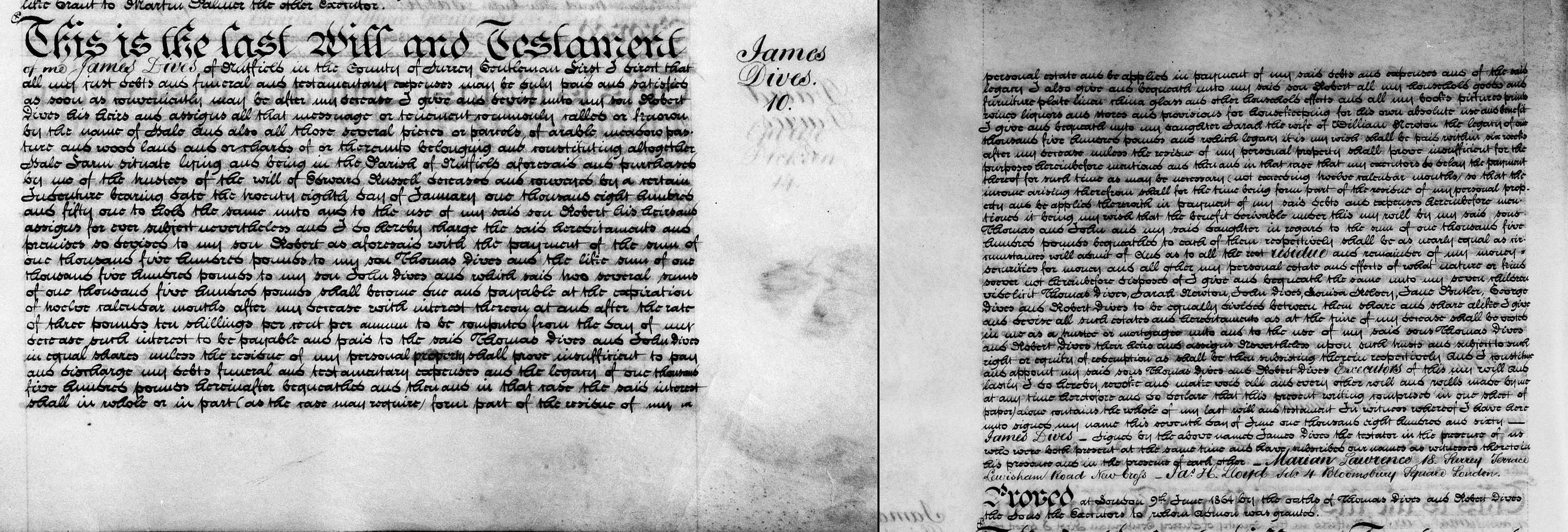 2. James Dives: Will & Probate, 9 Jun 1864. James married Sarah TURNER [20775] [MRIN: 7450] on 24 May 1796 in Lingfield Church SRY. (Sarah TURNER [20775] was born about 1775 and died on 27 Jul 1853.) |