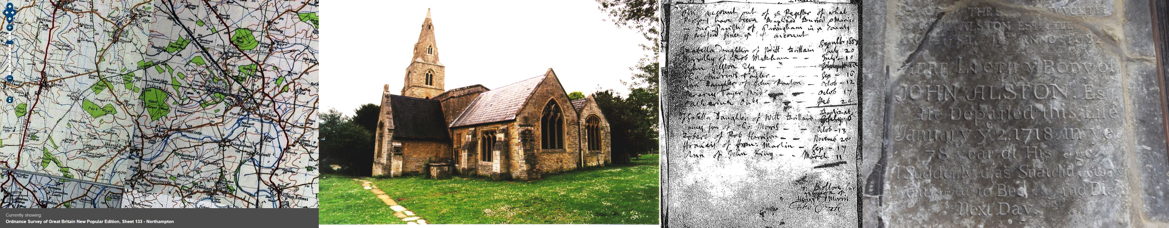 1. John Alston: Pavenham BDF. Odell/Pavenham and environs, St Peter Pavenham, John's burial register and Ledger stone, at top above his son John inscription. Death day very hard to read in Bishops Transcripts original Register entry missing on IGI film. Could be 15 or 16 transcription of illegible section of the Ledger stone in the floor of St Peters Pavenham, but Peter Daniel in "A History of St Peter Pavenham" suggests 13