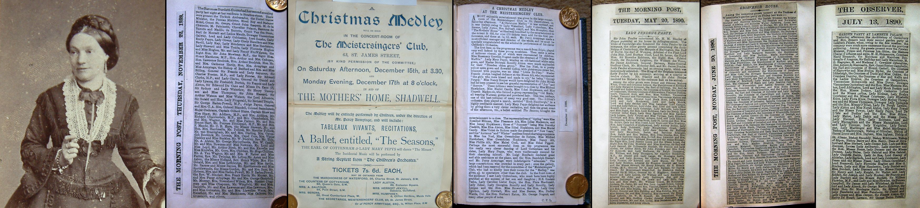 Lady Alston appears to have been part of the social whirl of Victorian London, a scrap book of paper cuttings on the family, possibly the property of Lady Alston, is in the possession of Roy Alston of Suffolk 2003.