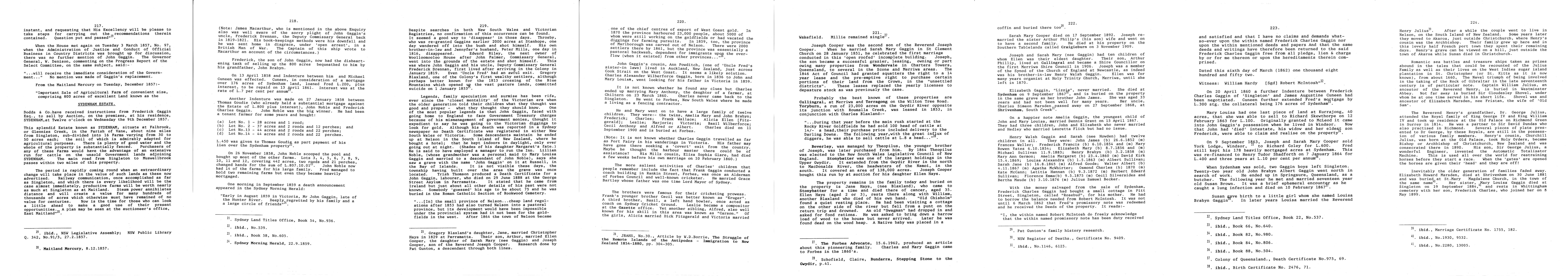 1. Gaggin & Brabyn family history. The Gaggin & Brabyn family pages 217 - 224 from the Life & Times of John Brabyn by Betty McGrath.