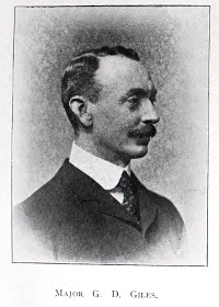 Giles was the son of Captain Edward Giles of the Royal Navy who was stationed at Karachi. Godfrey Douglas Giles was a boarding boy at Cheltenham. He was sent to the Royal Military College, Sandhurst, to launch his military career, and his first posting was in India in 1875. He saw action in the Second Afghan War with the 1st Sind Horse and the 19th Native Infantry, chiefly on the Khleat and Kandahar fronts, and according to one obituary notice, had been present at Maiwand. He certainly was present at the battle of Khuski-Nakhud in February 1879 and later painted the Charge of the Scinde Horse at Khuski-Nakhud. He also painted a scene of E/B Battery Royal Horse Artillery at Maiwand which was exhibited in 1893. It was drawn from details supplied by RSM Paton and Sergeant Mullane, VC who had been with the battery.