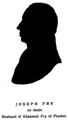 Joseph married Elizabeth GURNEY [1993] [MRIN: 643], daughter of John GURNEY of Earlham [1992] and Catherine BELL [1991], in Aug 1800. (Elizabeth GURNEY [1993] was born on 21 May 1780 in Magdalen Norwich, died on 12 Oct 1845 in Ramsgate KEN and was buried in Friends Graveyard Barking ESS.) |