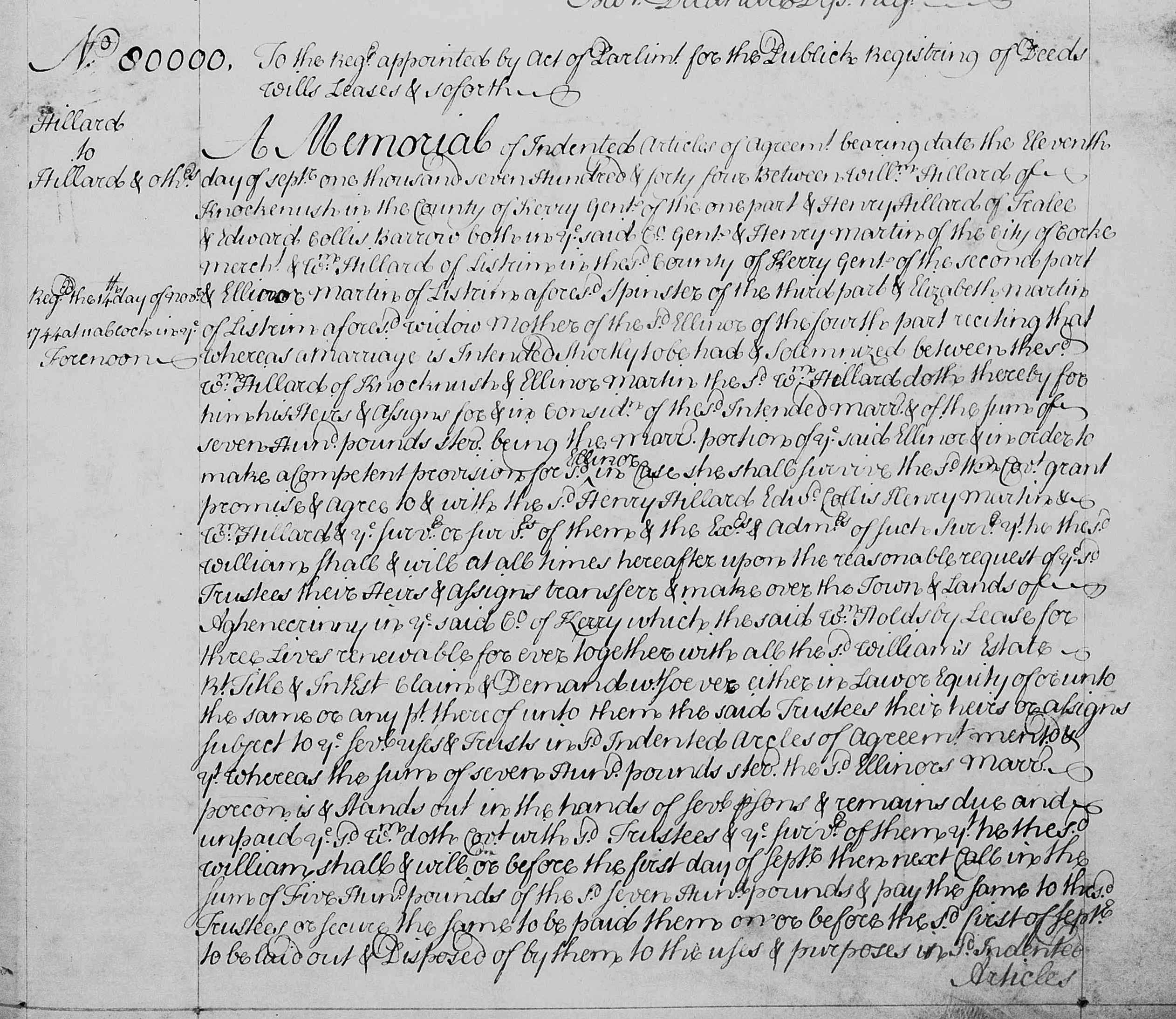1. William Hillard & Ellinor Martin: Marriage Settlement, 11 Sep 1744. William married Ellinor MARTIN [32591] [MRIN: 11647] in 1744. |