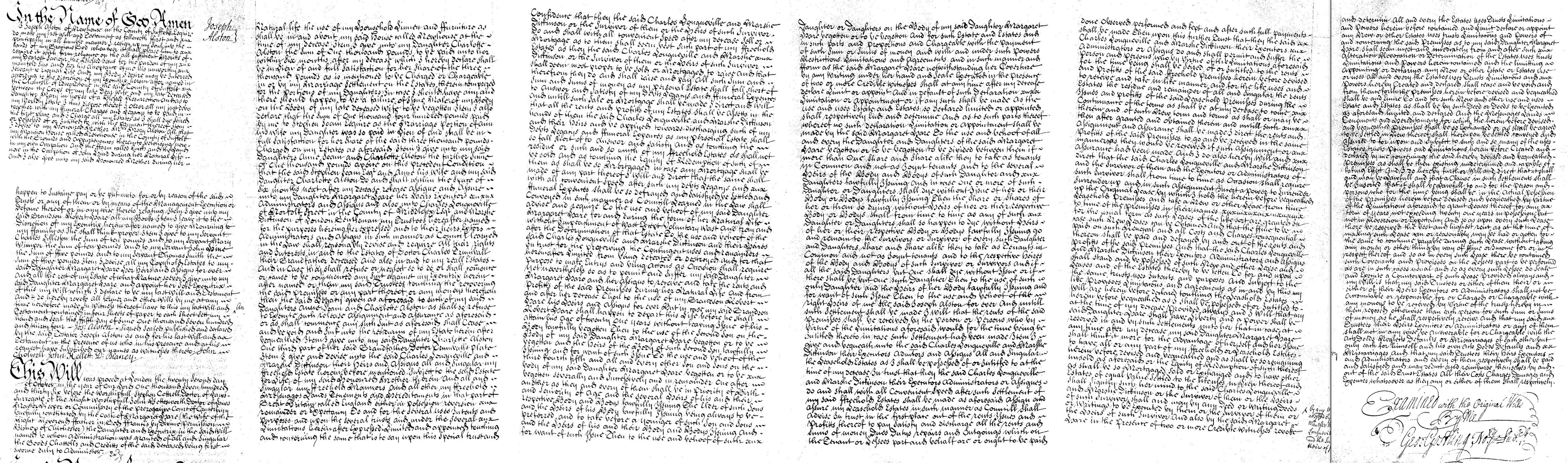 7. Will PROB 11/679: of Joseph Alston, 5 Jun 1734, of New House Edwardstone. Image PCC PROB 11/679/336. Precis of the Will of Joseph Alston of Newhouse Edwardstone Dated 5 June 1734. I desire to be buried in the Chancel of Edwardstone co. Suffolk between the Corps of my wife and daughter Mary of Newhouse, I desire my just debts funeral charges and legacies to be paid and charge all my Estates therewith. I give to my mother Mrs Mary Alston for her life my mansion called Newhouse with the grounds and appurtenances thereof; the farm called Quicks and the land now occupied by John Hind; also the use of the furniture and Linen in Newhouse. I give to my daughter Charlotte Alston L1000 in lieu of her share of the marriage settlement, for the portions of my daughters. I declare that the sum of L1400 paid by me to Stephen Soam Esq. as the marriage portion of Ann my daughter was to be in lieu of any claim she might make on the marriage settlement of L3000. I give further to my daughters Ann Soam and Charlotte Alston the sum of L1000 each provided that, they within six months after my death do release assure and assign unto my daughter Margaret Hare and her assigns, and also unto Charles Longueville of Norfolk St. co. Middlesex, Esq. and Marshe Dickinson of London Gent my Trustees all their rights and Interests in and to the Estates of Doctor Charles Trumball their grandfather, deceased, and also in and to my real estates I give to my said daughter Charlotte Alston one third of her grandfather's (Doctor Trumball) plate I give to Charles Longueville and Marshe Dickinson all my freehold Estate herein before mentioned (subject to the life interest of my mother) in trust-they to sell or mortgage such part of my estate to meet the claims of debts, legacies and funeral expenses as my personal estate shall fall short of the residue of my real estate I give to my daughter Margaret Hare with remainder to Charles Longueville and Marshe Dickinson in trust for my Grandson Robert Hare and his heirs male - in default of heirs male to the daughters of my said daughter Margaret. I give to my grandson Robert Hare all my Books. (Various legacies to servants) I devise all my Copyhold Estates to my daughter Margaret Hare and her heirs and I appoint her sole executrix of this my will. Signed: JOSEPH ALSTON Witnesses: John Cholwell, John Kellett, D. Blaney Proved 22 October 1736 by Margaret Hare (wife of the Rt Revd Francis Bishop of Chichester) the daughter and executrix named in will. Derby 211. Alstoniana Pg 135