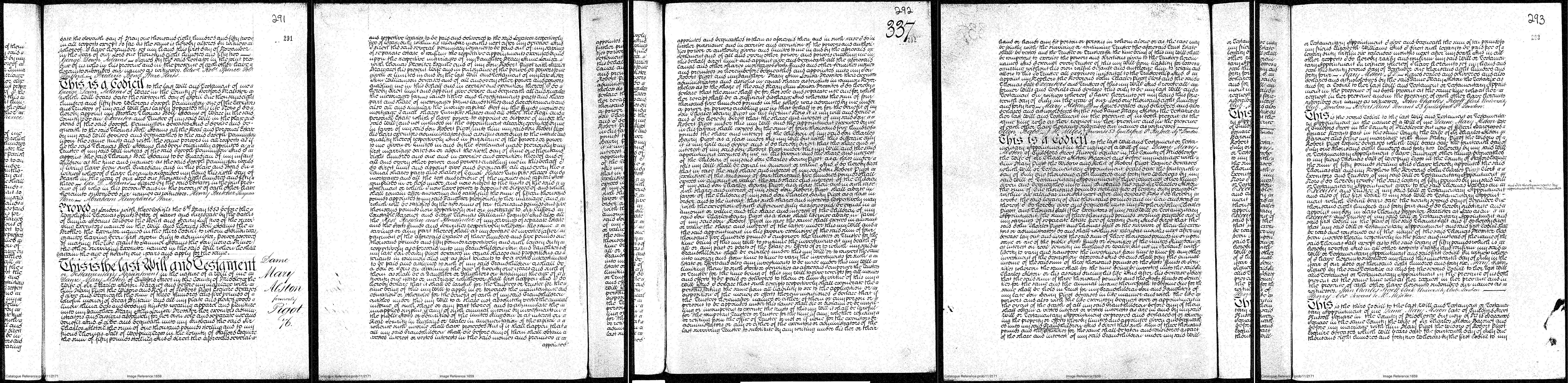 2. Dame Mary Alston: Will, 1853.