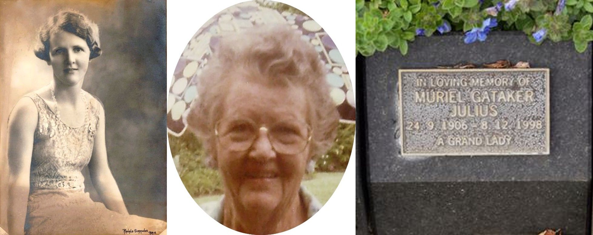 Muriel Gataker Julius Gender: Female Birth Date: 24 Sep 1906 Death Date: 8 Dec 1998 Cemetery: Mount Thompson Memorial Gardens and Crematorium Burial or Cremation Place: Holland Park West, Brisbane City, Queensland, Australia